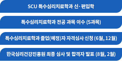 ¡Ø Ư¼ö½É¸®Ä¡·áÇаú¿¡ ÀÔÇÐÇÑ´Ù´Â °ÍÀº ½É¸®ÇÐ °ü·Ã ¿©·¯ °ú¸ñÀ» À̼öÇÑ´Ù´Â °¡Á¤ÀÌ ÀÌ·ç¾îÁý´Ï´Ù. Ư¼ö½É¸®Ä¡·áÇаú ÀçÇлýÀº ¡®»ó´ãÀ̷аú ½ÇÁ¦¡¯, ¡®³îÀÌÄ¡·á¡¯, ¡®Áý´Ü»ó´ã¡¯, ¡®Æ®¶ó¿ì¸¶Ä¡·á¡¯, ¡®ÀÌ»ó½É¸®ÇС¯ °ú¸ñ¸¸ À̼öÇÏ¸é ½ÅûÀÌ °¡´ÉÇÕ´Ï´Ù.